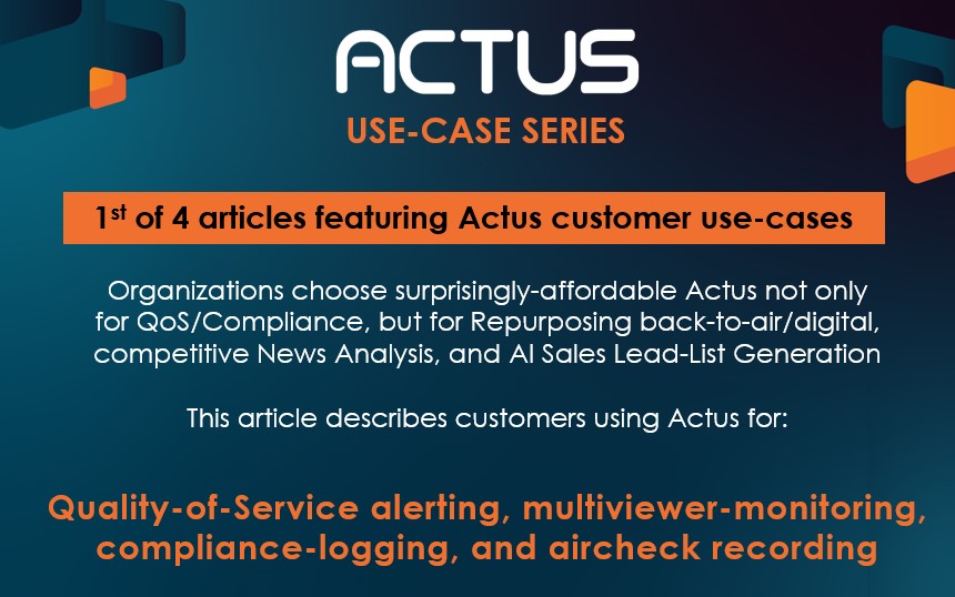 Le plus gros client américain d’Actus Digital est un groupe d’environ six douzaines de stations qui ont déployé les systèmes de pointe d’Actus pour le contrôle de la qualité de service et la conformité à la FCC.